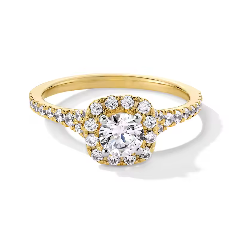 Discover the perfect symbol of love with our exquisite 10K Gold engagement ring, featuring a stunning round lab-created diamond. Designed for couples, this halo-style ring showcases a large center stone available in various weights, ensuring it complements every unique love story with exceptional brilliance and clarity.