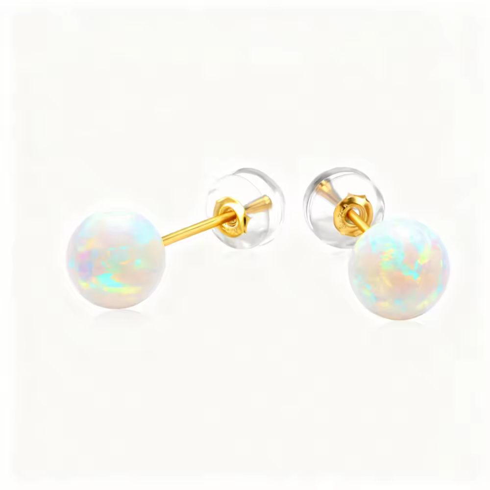 Experience luxury with our 10K Gold Stud Earrings featuring stunning opals and intricate bead designs.