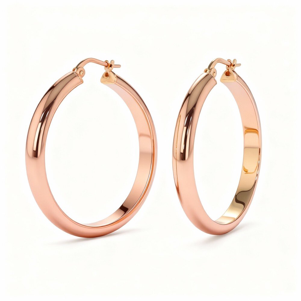 These stunning hoop earrings feature a classic design that seamlessly fits into any wardrobe. With a width of 3.75MM and a diameter of 35MM, they offer both sophistication and comfort. Crafted from high-quality 10K Rose Gold, these earrings are designed to catch the light beautifully, making them a standout accessory for any outfit. The inner diameter of 30MM ensures they fit comfortably while adding a touch of flair to your appearance. Ideal for both everyday wear and special occasions, these Rose Gold hoops are a versatile addition to your jewelry collection. Enjoy the simplicity of their design, allowing the natural beauty of the Rose Gold to shine without distractions. Whether dressing up for a formal event or adding a stylish touch to your casual attire, these earrings are the perfect choice to elevate your look.