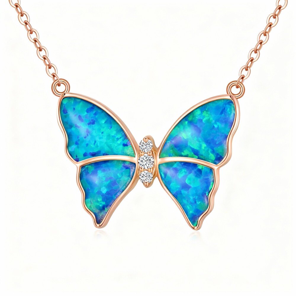 Crafted with exceptional care, this pendant necklace seamlessly blends classic elegance with contemporary allure. The exquisite butterfly pendant is adorned with dazzling Cubic Zirconia stones, which sparkle with every movement, while the central Opal radiates a unique and mesmerizing hue. This versatile piece is perfect for various occasions, from casual outings to formal events, ensuring that you’ll always make a statement. Whether worn alone for a subtle touch or layered with other jewelry for a more dramatic effect, this necklace is designed to enhance your beauty and confidence. Its luxurious yet understated design makes it a must-have accessory for any jewelry collection.
