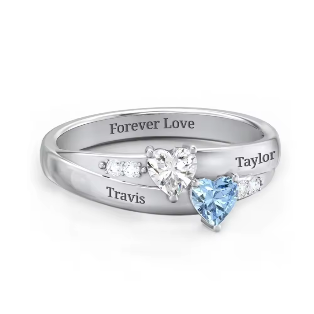 Discover our exquisite Personalized Birthstone Ring, crafted from high-quality sterling silver and adorned with radiant cubic zirconia, designed to celebrate life's special moments. This heart-shaped ring is elegantly white gold plated, making it a perfect gift for the woman who cherishes personalized jewelry, offering the unique touch of custom engravings alongside her birthstone for a truly meaningful accessory.