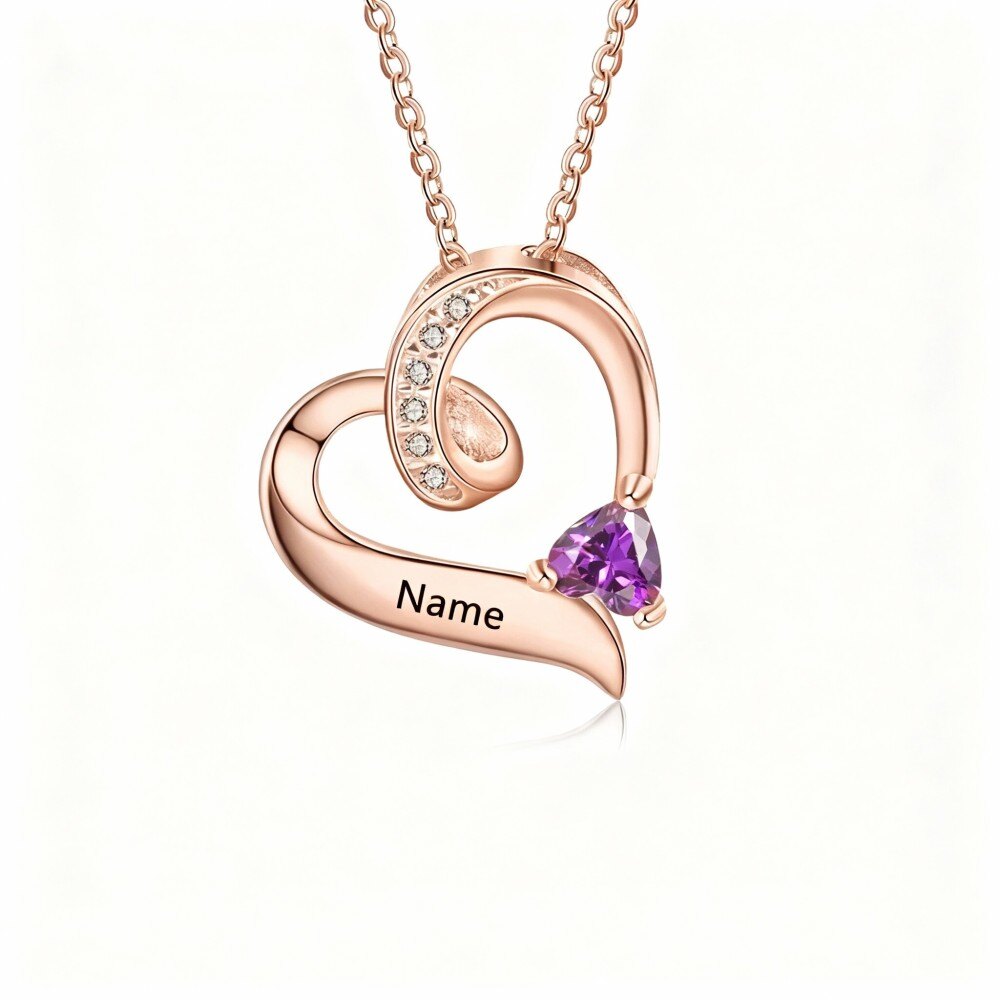 Discover timeless elegance with our heart-shaped pendant necklace, expertly crafted in 10K Gold and adorned with sparkling Cubic zirconia and personalized birthstones, available in a choice of gold, rose gold, and Rose Gold, perfect for women who appreciate finely designed jewelry.