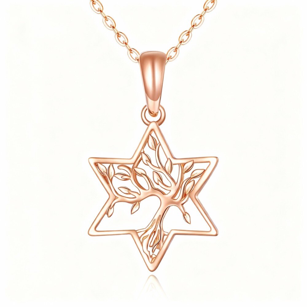 Experience the sophistication of our 10K Rose Gold Pendant Necklace, an exquisite piece for women combining the Tree of Life and Star of David.