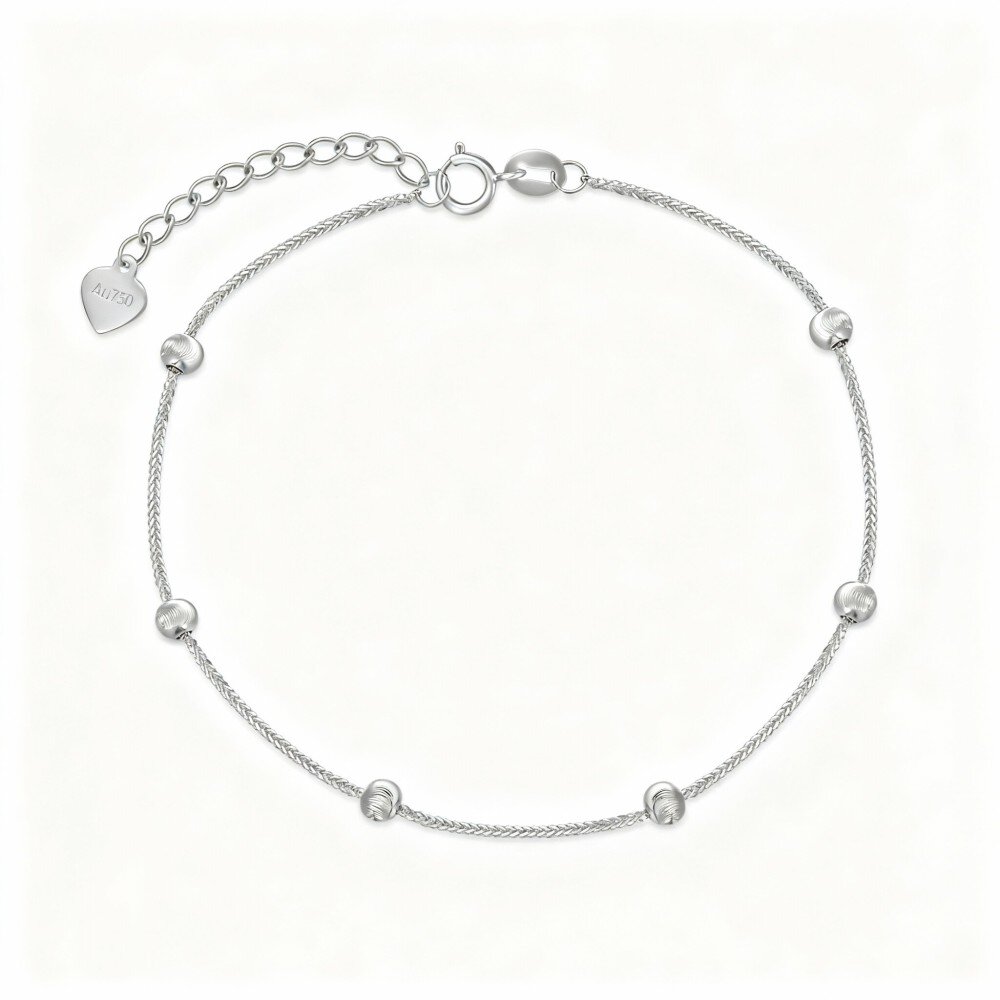 Experience the allure of our White Gold Bead Station Chain Bracelet, designed for women who appreciate exquisite craftsmanship and timeless beauty.