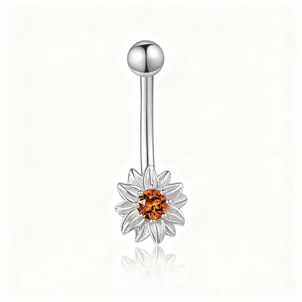 Discover a blend of charm and elegance with our 10K White Gold Sunflower Crystal Belly Button Ring, perfect for women who love luxurious jewelry.