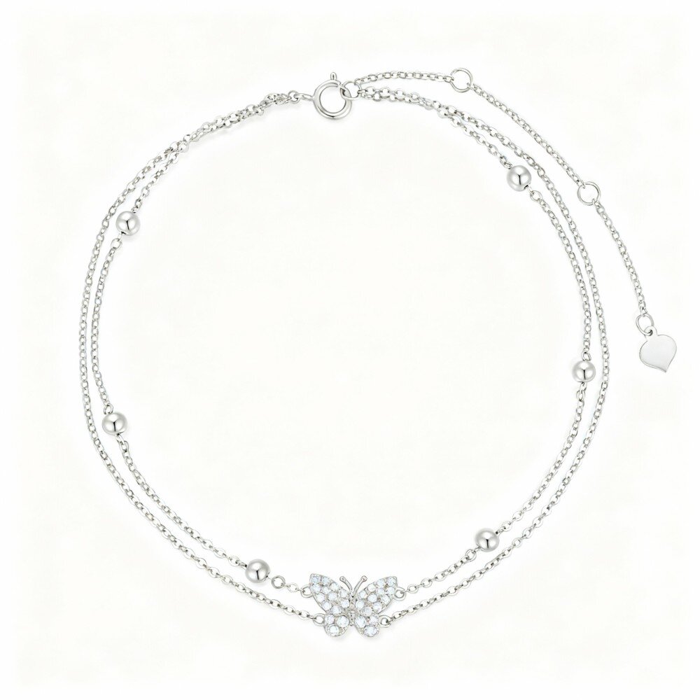 Discover our stunning 10K White Gold charm bracelet, featuring a beautiful butterfly design embellished with shimmering cubic zirconia for a touch of elegance.