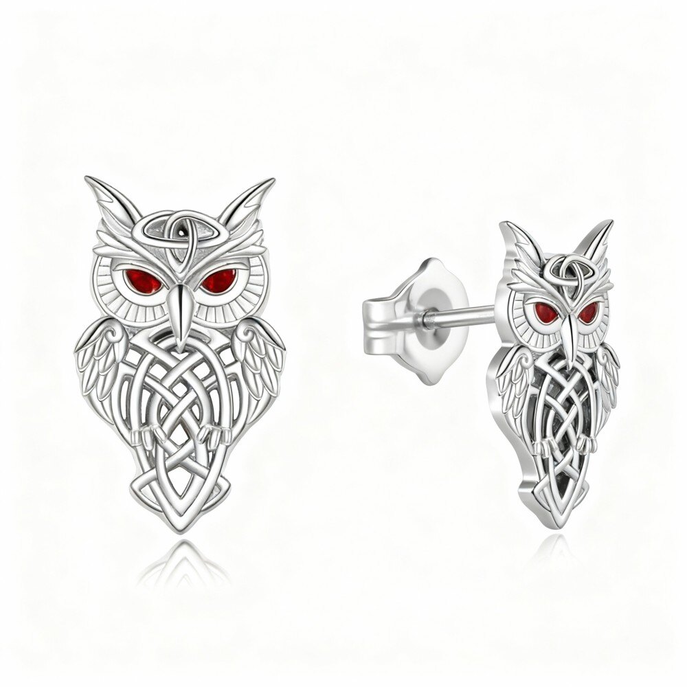 Elevate your fashion with our exquisite 10K White Gold Owl Stud Earrings, showcasing sparkling Cubic Zirconia and a detailed Celtic Knot design.