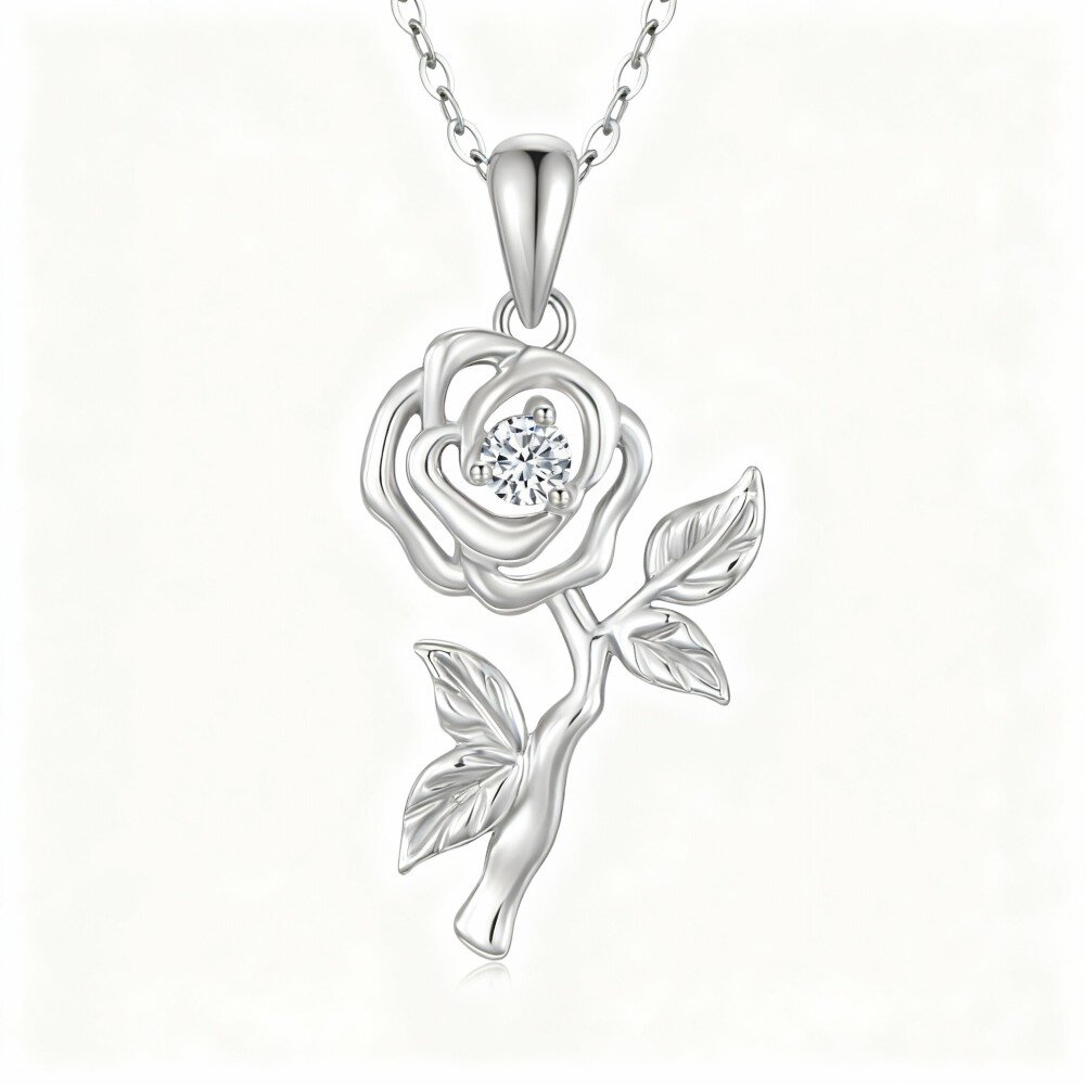 Experience the charm of our exquisite 10K White Gold Pendant Necklace featuring a stunning rose design embellished with sparkling Cubic Zirconia, perfect for elegant women.