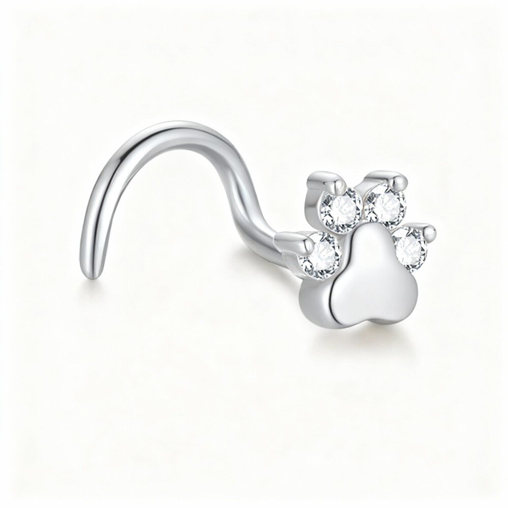 Explore our exquisite unisex 10K White Gold nose ring featuring a brilliant moissanite gemstone in a charming paw design that combines elegance with playfulness.