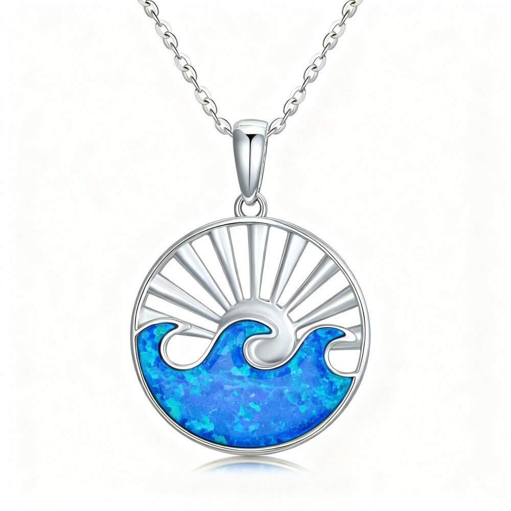 Discover the charm of our stunning 10K White Gold Pendant Necklace featuring a radiant opal sun design.