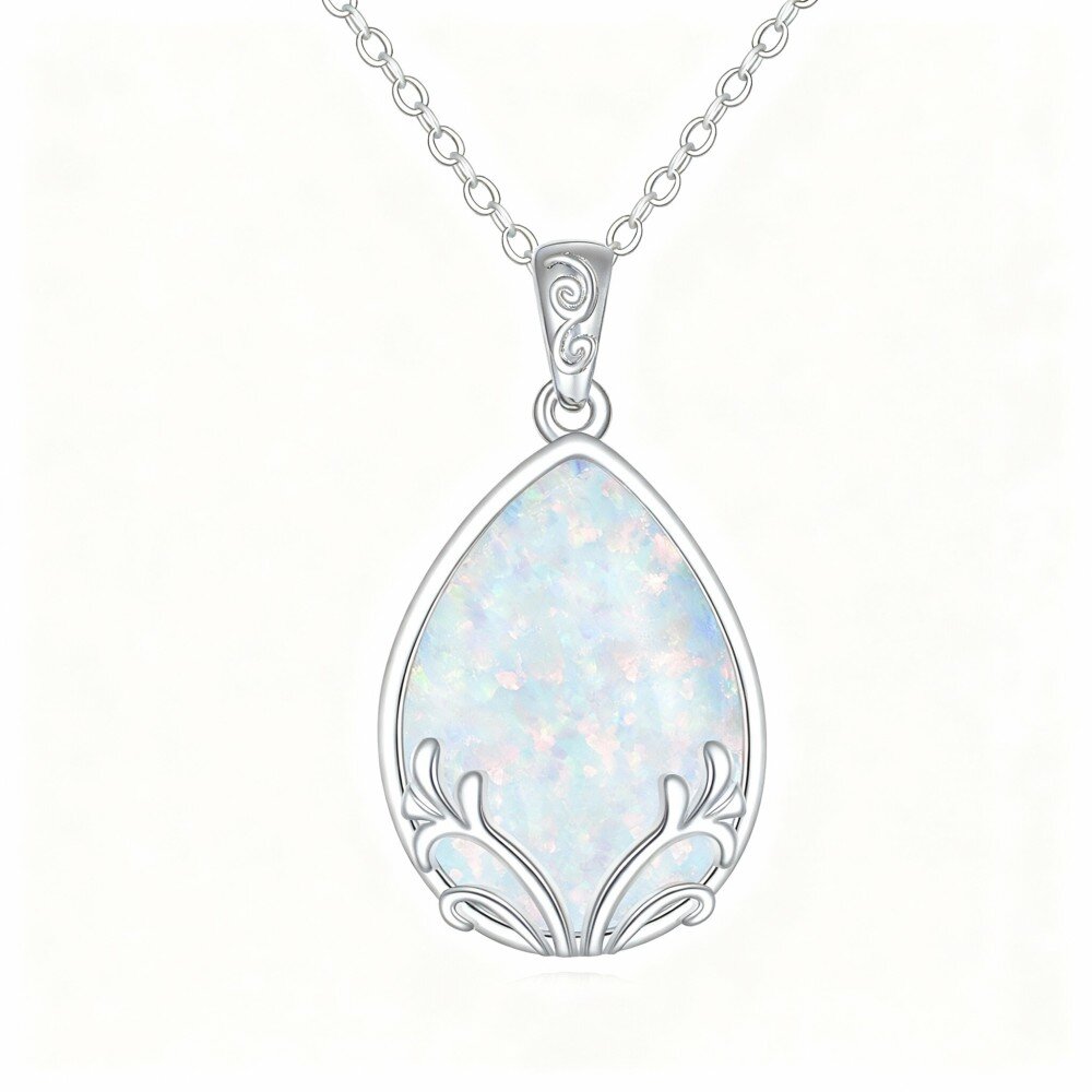 Experience timeless elegance with our stunning opal drop pendant necklace crafted from luxurious 14K White Gold.