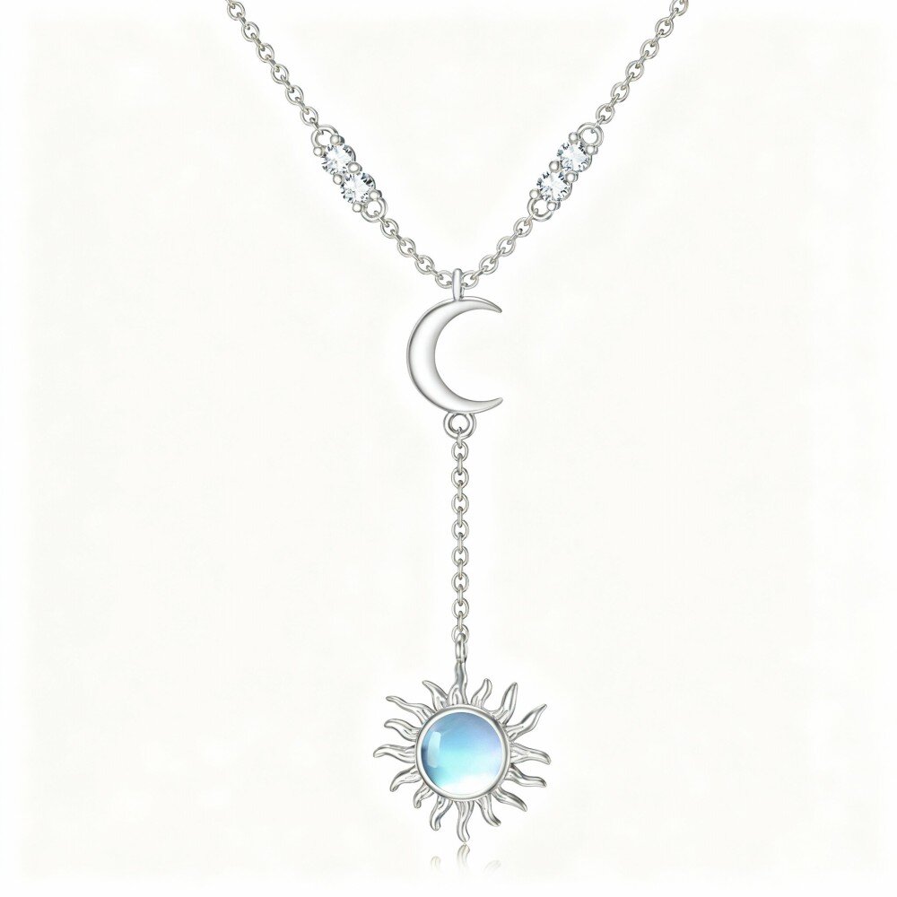 This exquisite necklace features a beautifully designed Y shape that highlights the circular sun and moon motifs, elegantly complemented by a captivating moonstone centerpiece. Made from high-quality 10K White Gold, this necklace not only showcases luxury but also promises durability, making it a timeless addition to any jewelry collection. The adjustable design ensures a perfect fit for any neckline, allowing for versatile wear whether you're dressing up for a special occasion or adding elegance to your everyday outfit. The sun and moon elements symbolize harmony and balance, making this piece not just a fashion statement but also a meaningful accessory. Its radiant moonstone center sparkles in the light, creating a mesmerizing effect that is sure to draw compliments. Elevate your style with this celestial-inspired jewelry, perfect for gifting or personal indulgence.