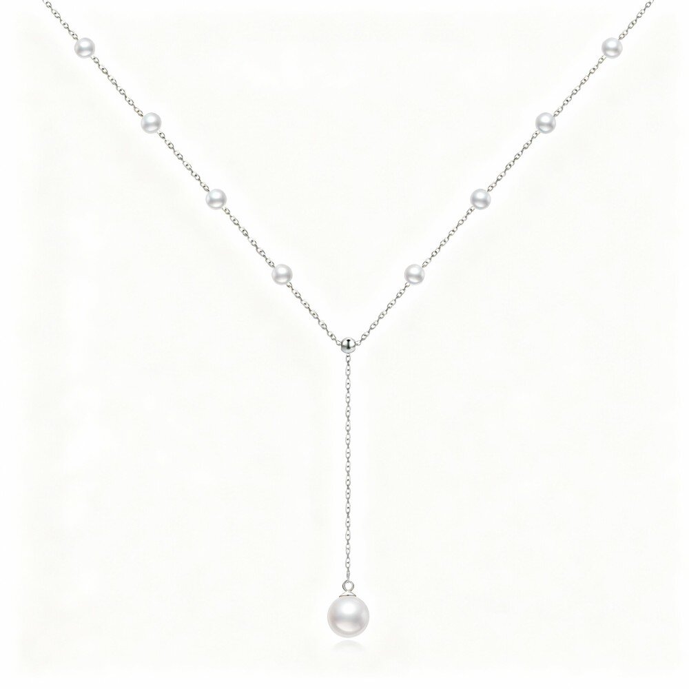 Experience refined elegance with our Adjustable Y Necklace crafted from 10K White Gold, embellished with exquisite Pearls and beads, designed for the modern woman.