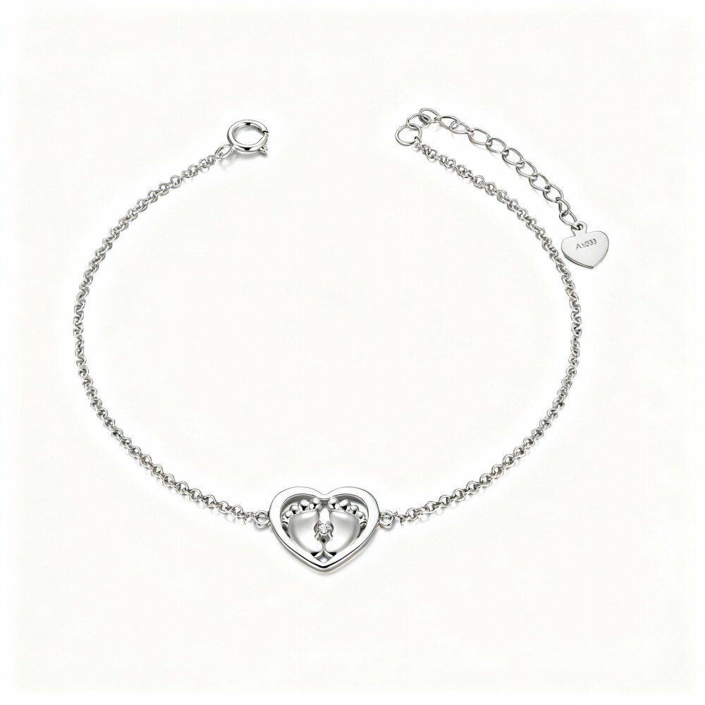 Discover our exquisite 10K White Gold Charm bracelet, designed for women who love to blend elegance with meaningful symbolism; featuring delicate heart and footprint charms adorned with dazzling crystals, this piece is a standout addition to any jewelry collection.