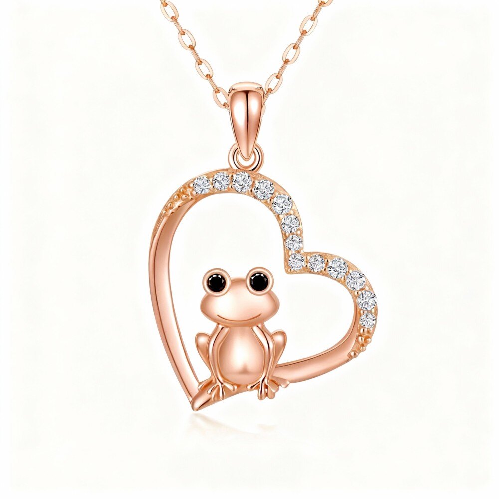 Discover our stunning 14K Rose Gold pendant necklace, adorned with sparkling Cubic zirconia, featuring a charming frog set within a heart design—perfectly crafted for women who cherish unique and elegant jewelry pieces.