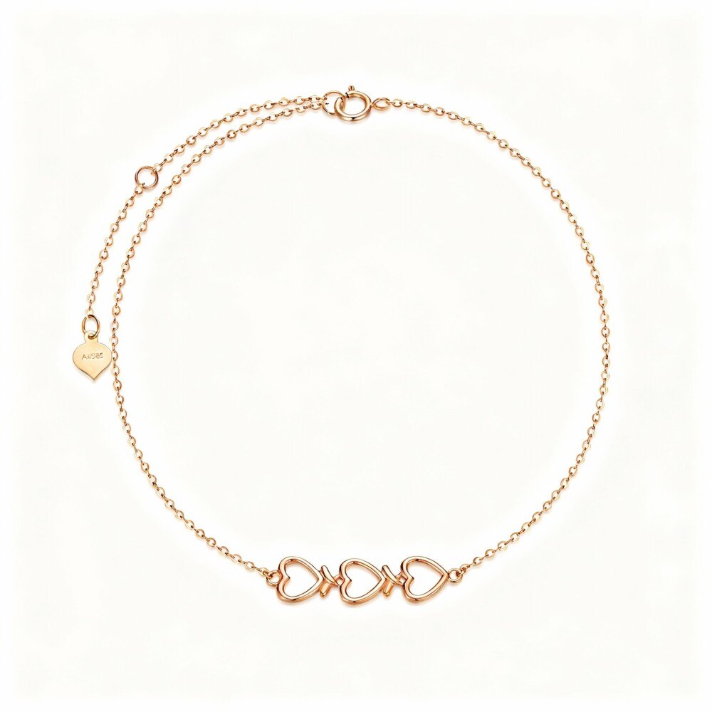 Crafted from high-quality 14K Rose Gold, this anklet is not only lightweight and comfortable but also durable for lasting beauty. Its unique heart-with-heart design symbolizes love and connection, making it an ideal gift for yourself or a loved one. The versatile Rose Gold tone beautifully complements any outfit, whether you're at the beach, a formal gathering, or simply enjoying a night out. Embrace your individuality with this exquisite anklet that effortlessly enhances your style.