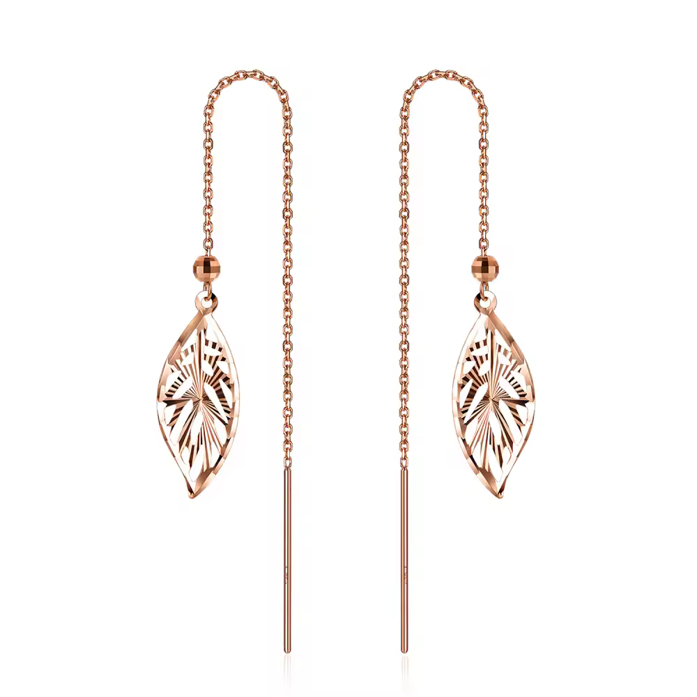 Explore our exquisite 14K Rose Gold Drop Earrings, combining elegance with nature-inspired aesthetics, designed for the contemporary woman.