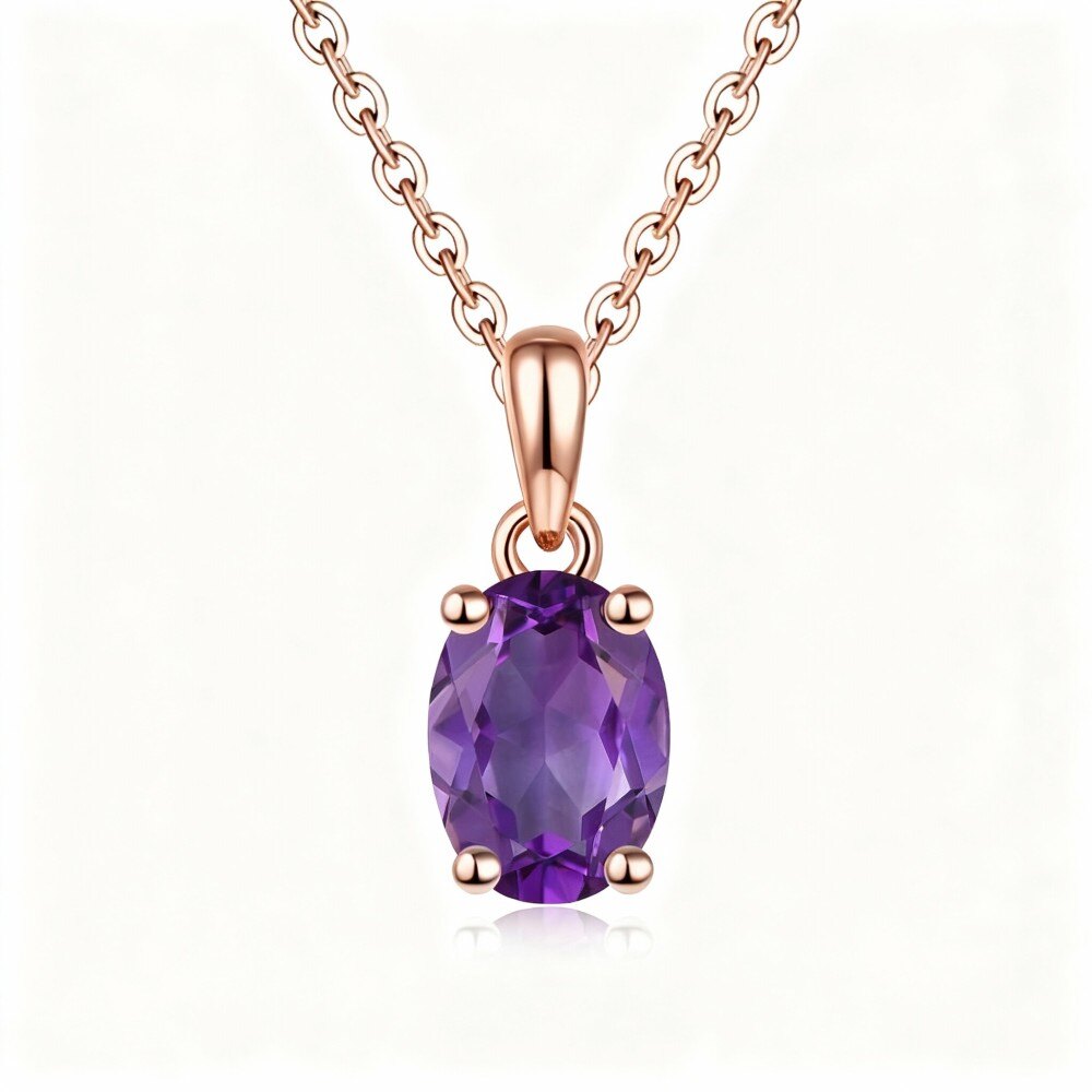 Elevate your elegance with our stunning 14K Gold Oval Amethyst Pendant Necklace for women, featuring a harmonious blend of round and oval Rose Gold elements, perfect for any occasion.