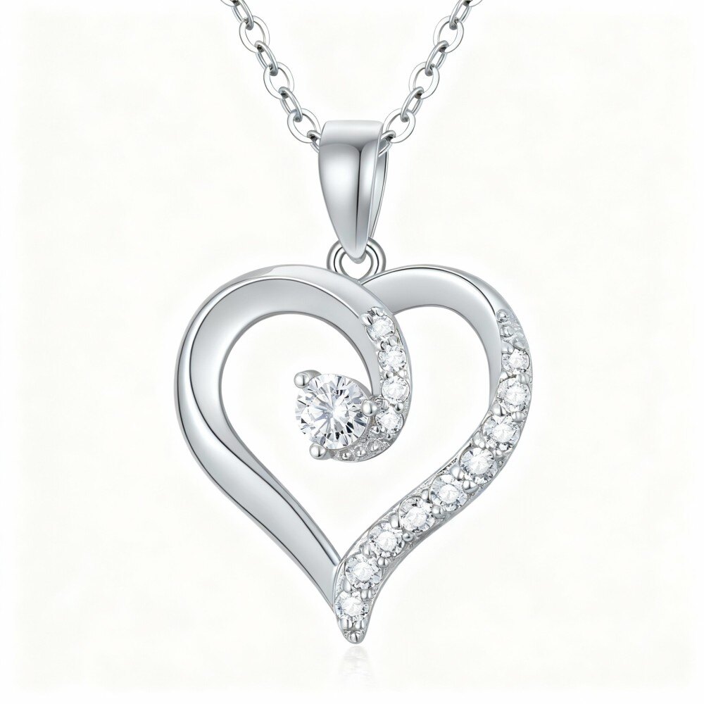 Discover the elegance of our 14K White Gold Pendant Necklace, exquisitely designed for women featuring a shimmering heart adorned with brilliant Cubic Zirconia, making it the perfect piece to add a touch of luxury and romance to any outfit.
