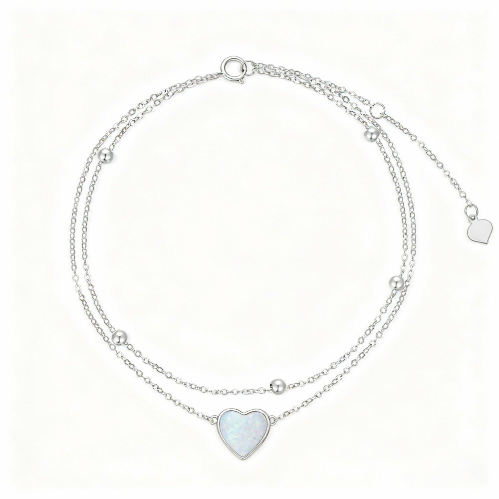 Crafted from the finest 14K White Gold, this multi-layered charm anklet features an enchanting heart-shaped opal that captures the light beautifully, making it a standout piece in any jewelry collection. Perfect for women seeking a blend of sophistication and charm, its delicate layers and captivating heart design ensure it complements any outfit, from casual wear to evening elegance.