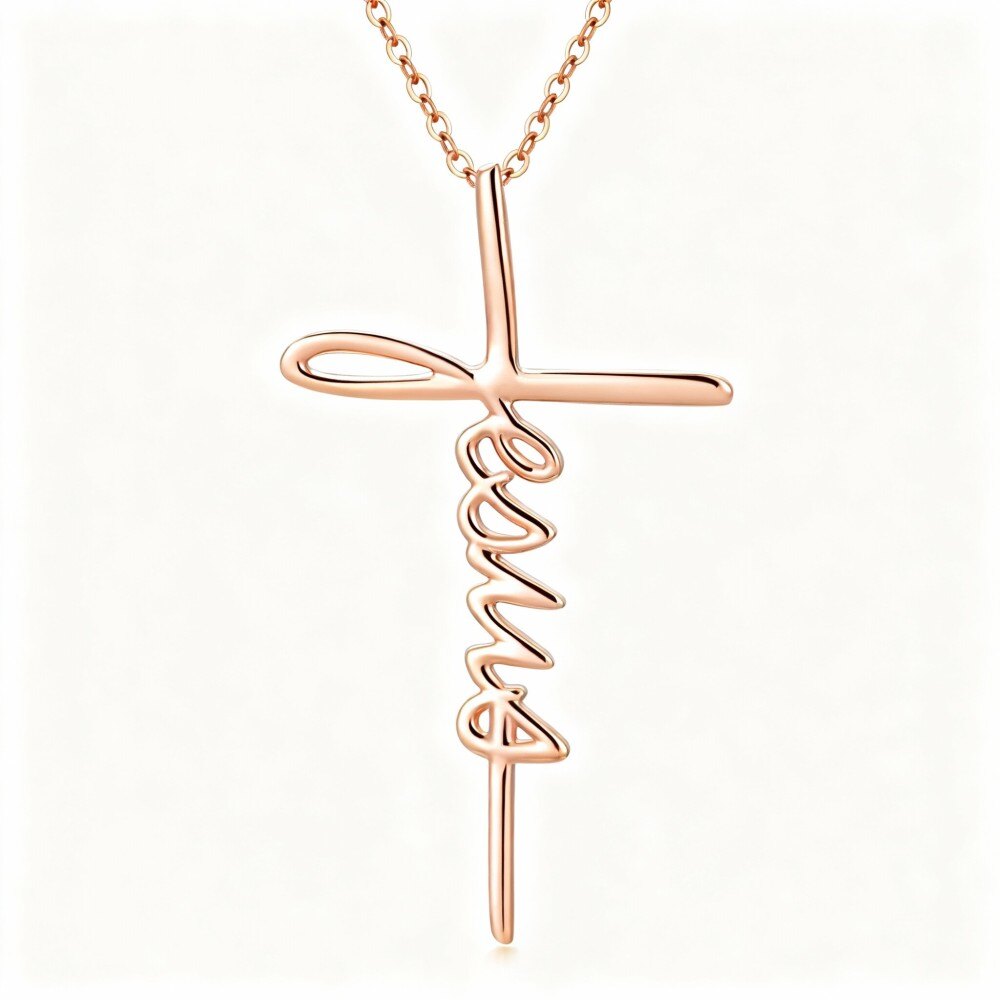 Crafted from premium 18K Rose Gold, this elegant pendant necklace features a classic cursive cross design that resonates with the modern woman's sense of faith and fashion. The refined simplicity of this piece allows it to complement any outfit, whether casual or formal, making it an essential accessory in your jewelry collection. Beyond its aesthetic appeal, the cross motif embodies spiritual strength and personal belief, making it a meaningful gift for yourself or a loved one. Thanks to the high-quality Rose Gold, this necklace promises durability and a brilliant shine that lasts, ensuring it remains a cherished piece for years to come. Embrace the elegance and significance of this beautiful pendant as you express your unique style and beliefs.