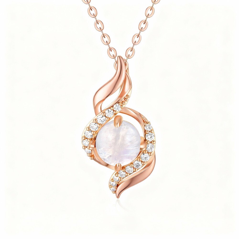 Explore our exquisite 18K Rose Gold Pendant Necklace, specially crafted for women, featuring a brilliant Cubic Zirconia centerpiece and enchanting Moonstone.