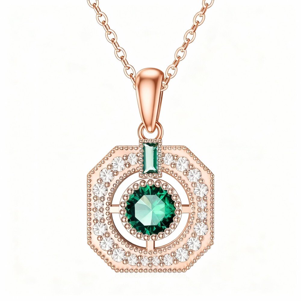 Elevate your elegance with our stunning 18K Rose Gold Pendant Necklace, featuring a dazzling square-cut Cubic Zirconia and a captivating Emerald, meticulously crafted for modern women.