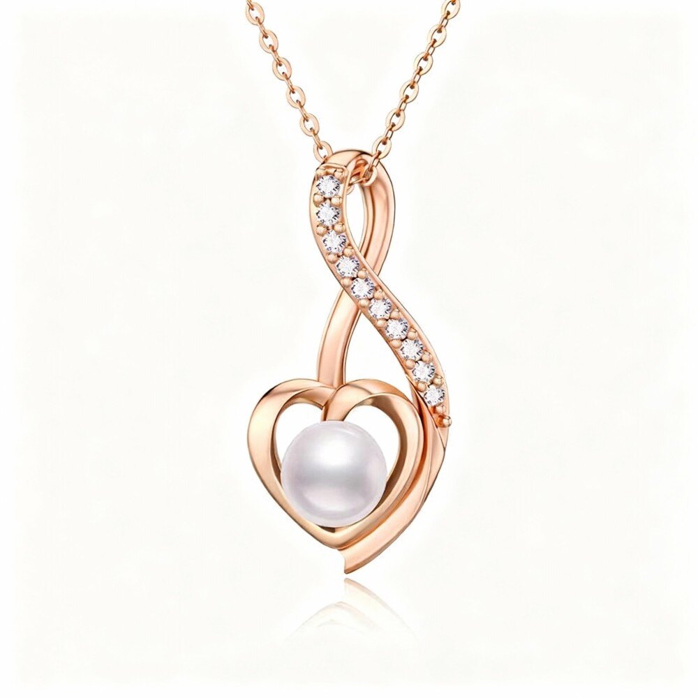 Crafted with precision, our 18K Rose Gold Pendant Necklace features a radiant pearl centerpiece and sparkling cubic zirconia accents, elegantly shaped into heart and infinity symbols to represent eternal love. This luxurious piece is designed for women who cherish meaningful, high-quality jewelry. Whether for everyday wear or special occasions, this necklace adds a touch of sophistication to any outfit. The 18K Rose Gold ensures durability and a lustrous finish, making it a cherished addition to your jewelry collection. Ideal for gifting or treating yourself, this pendant symbolizes love, infinity, and timeless beauty.