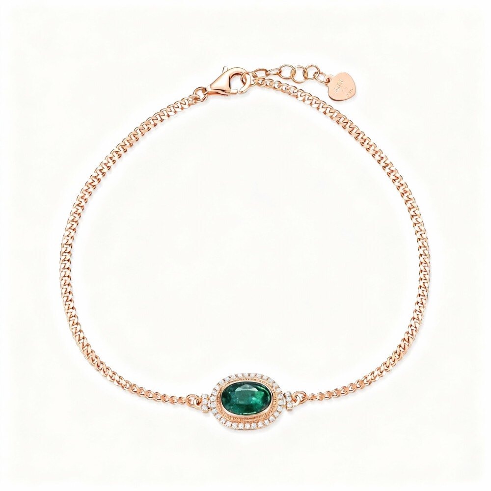 This exquisite bracelet showcases a harmonious blend of luxurious 18K Rose Gold with a unique mix of round and oval-shaped Charms, each set with flawless diamonds and radiant emeralds. The clear, radiant combination of gemstones and Rose Gold captures the essence of timeless elegance, making it the perfect accessory for any occasion. Ideal for the modern woman, these meticulously crafted pieces are designed to elevate your jewelry collection with unmatched glamour and style.