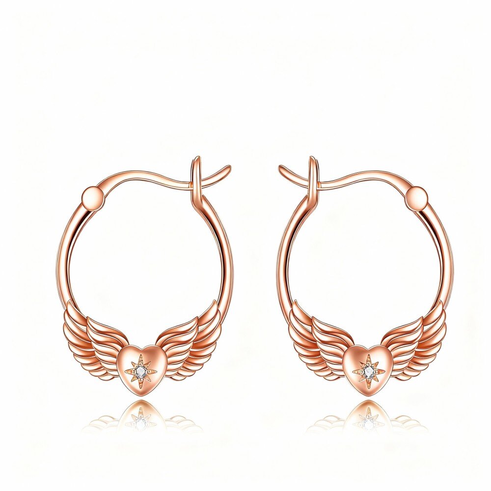 Discover the beauty of our exquisite 18K Rose Gold Angel Wing Drop Earrings, designed for women who appreciate elegance and sophistication.