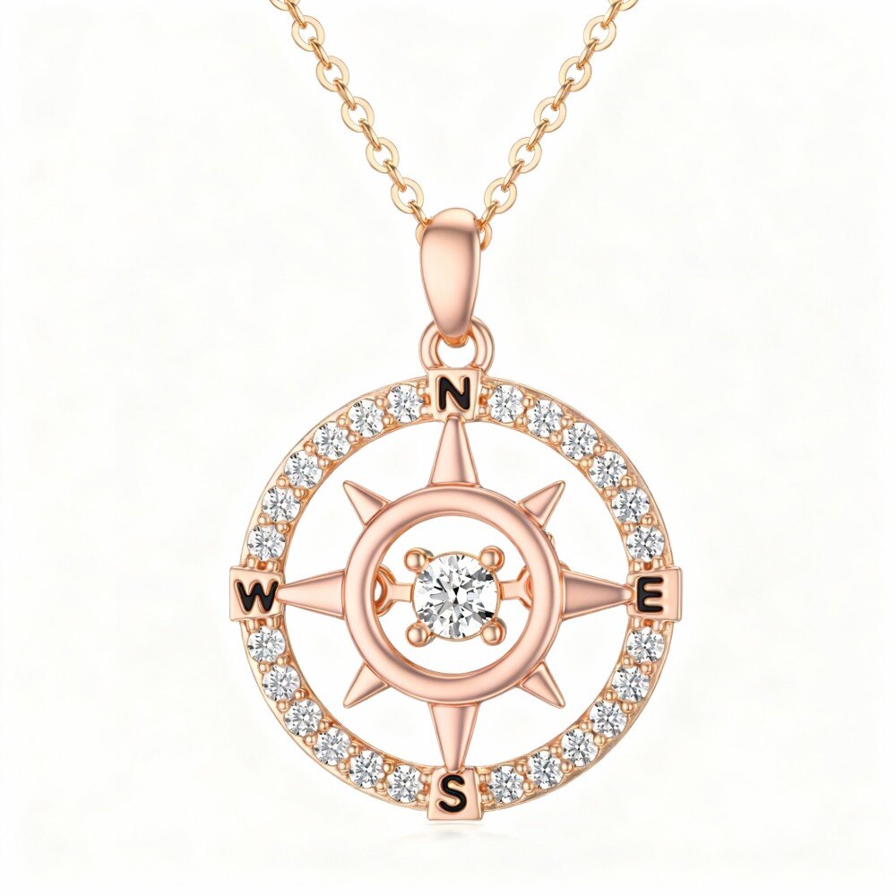 Discover our stunning 18K Rose Gold pendant necklace, featuring a beautiful compass design with sparkling Cubic zirconia, perfect for women who value elegance and direction.