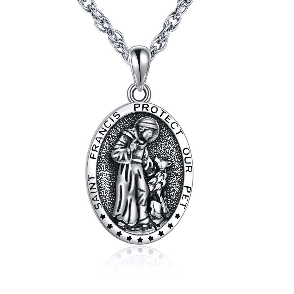 This exquisite necklace showcases the elegance of sterling silver with a classic retro finish, making it a versatile fit for any wardrobe. The pendant, adorned with an intricate depiction of Saint Francis, is not only a beautiful accessory but also a token of spiritual protection for your cherished pets. Whether worn daily or on special occasions, this unisex necklace offers a unique blend of style and sentiment.