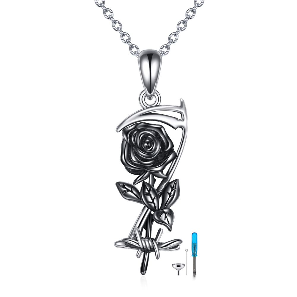 Our elegantly crafted Unisex Sterling Silver Urn Necklace for Ashes blends sophistication with sentimentality, featuring a beautiful rose design in versatile silver and black, making it the perfect memorial keepsake for anyone.
